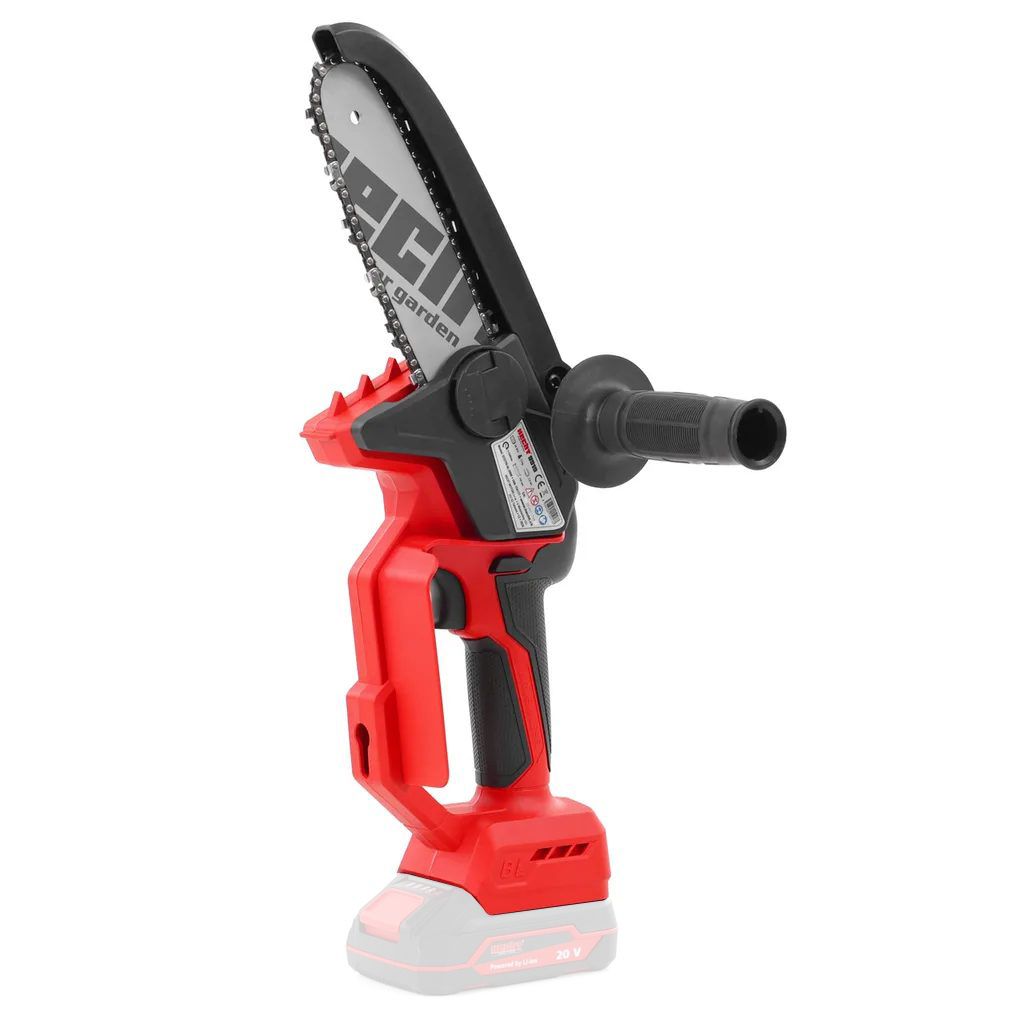 Kis mérete ellenére erőteljes vágószerszám. Munka közben mindig viseljen védőszemüveget és kesztyűt. A fűrész véletlen beindítás megakadályozása érdekében reteszelőgombbal van felszerelve – az indításhoz először meg kell nyomni a reteszelőgombot. Minden használat előtt ellenőrizze a lánc megfelelő feszességét és élességét; a tompa lánc szükségtelenül megterheli a motort és az akkumulátort.