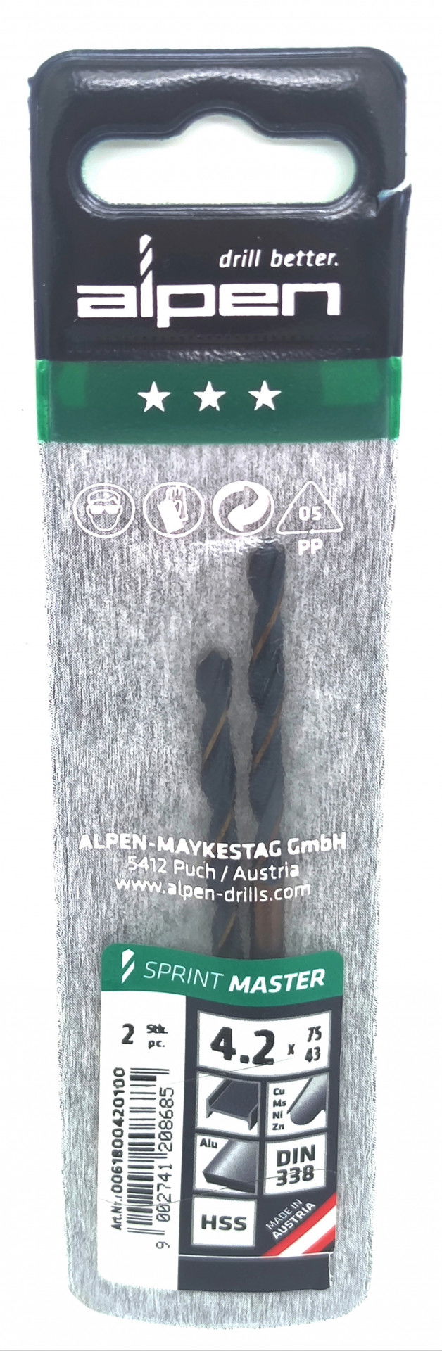 Alpen Csigafúró HSS Sprint Master DIN 338 4.2x75x43mm 2db/csomag 1232321