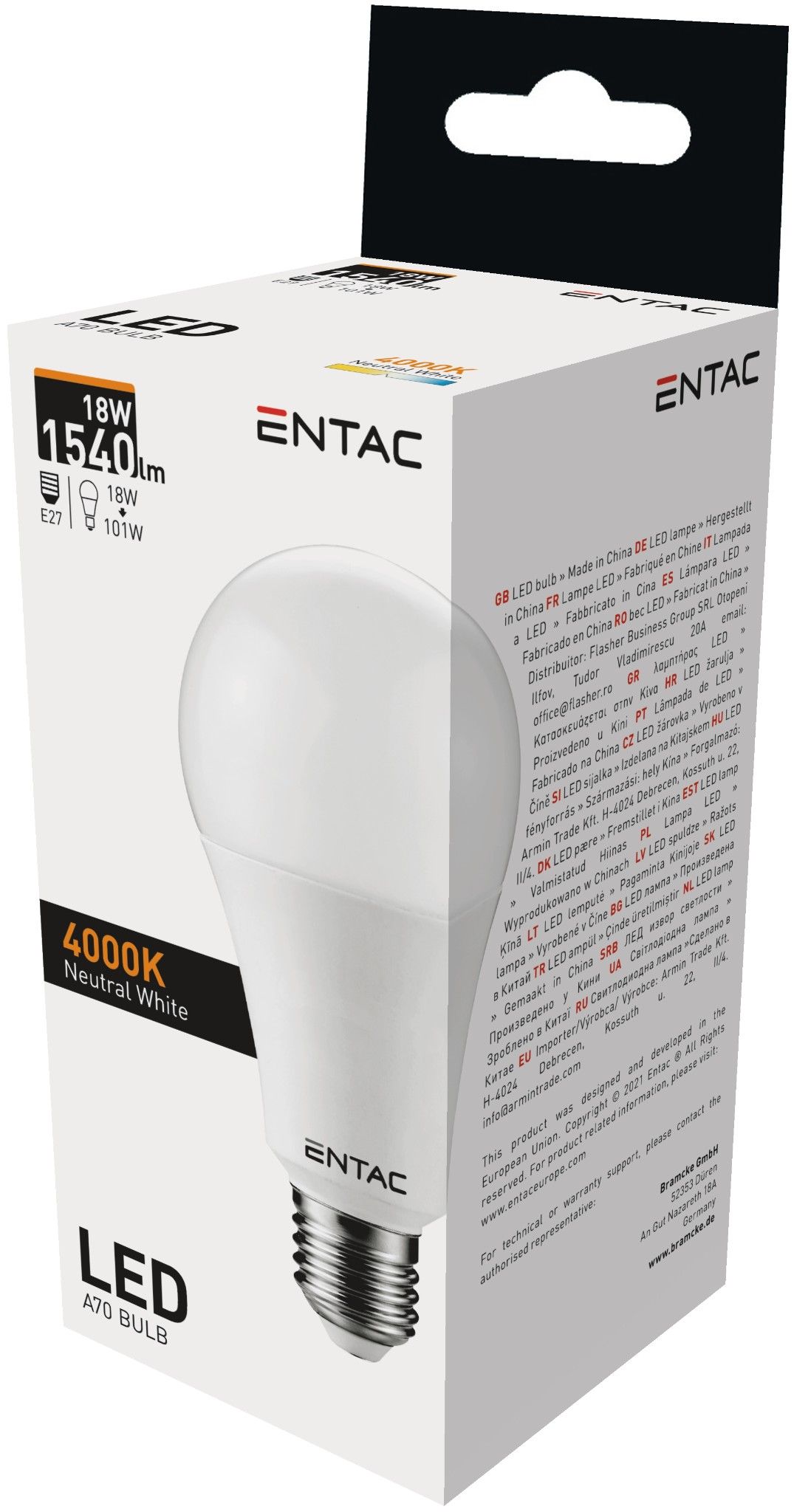 Entac LED Globe E27 18W NW 4000k izzó